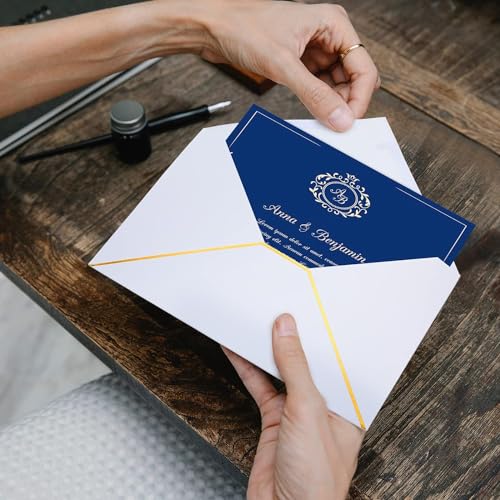 【封筒】これらの封筒は、金箔の縁取りが付いたV字型のフラップデザインが特徴で、封筒をより洗練されたユニークな外観にします。招待状の保管に使用すると、人々の注目を集めやすく、印象に残ります