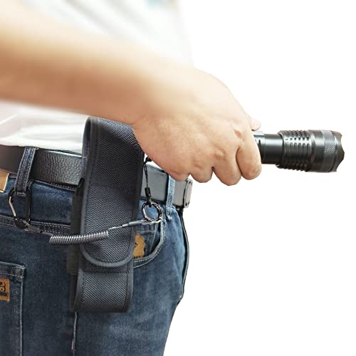 フラッシュライト ポーチ 懐中電灯ケース 懐中電灯ホルスター 電池収納ポケット カールコード付き ブラック