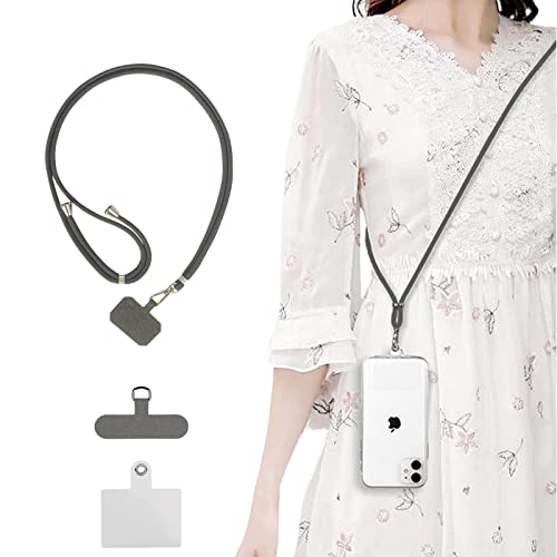 スマホストラップ ネックストラップ ナイロン製 1本+3枚入 スマホ タグパッチ 携帯ストラップ 肩掛けストラップ 首掛け 斜め掛け 長さ調整可能 軽量 着脱簡単 紛失 / 落下防止 携帯 / 鍵 / カメラに 全機種対応 (Dark gray)