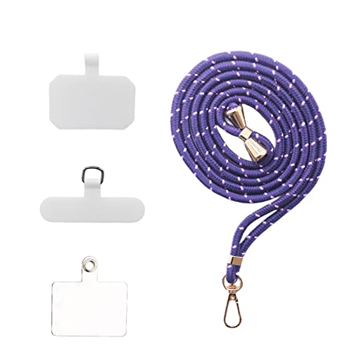 スマホストラップ ネックストラップ ナイロン製 1本+3枚入 スマホ タグパッチ 携帯ストラップ 肩掛けストラップ 首掛け 斜め掛け 長さ調整可能 軽量 着脱簡単 紛失 / 落下防止 携帯 / 鍵 / カメラに 全機種対応 (Deep purple powder)