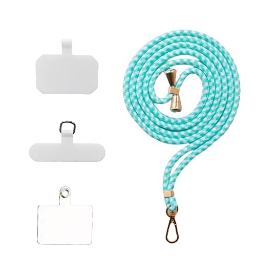 スマホストラップ ネックストラップ ナイロン製 1本+3枚入 スマホ タグパッチ 携帯ストラップ 肩掛けストラップ 首掛け 斜め掛け 長さ調整可能 軽量 着脱簡単 紛失 / 落下防止 携帯 / 鍵 / カメラに 全機種対応 (Water green white) 送料無料