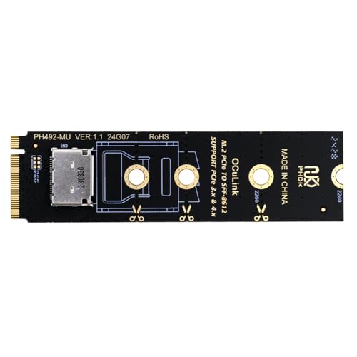コネクタ: 1 x OCuLink SFF-8612 メス、1 x 67 ピン M.2 Key M オス。データ転送速度最大 64Gbps、NVM Express (NVMe) 1.2 をサポート。