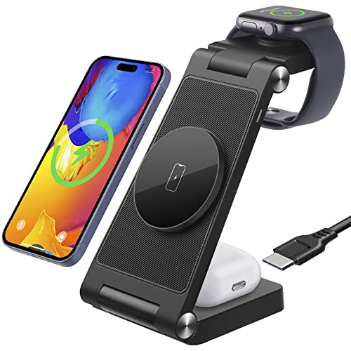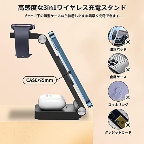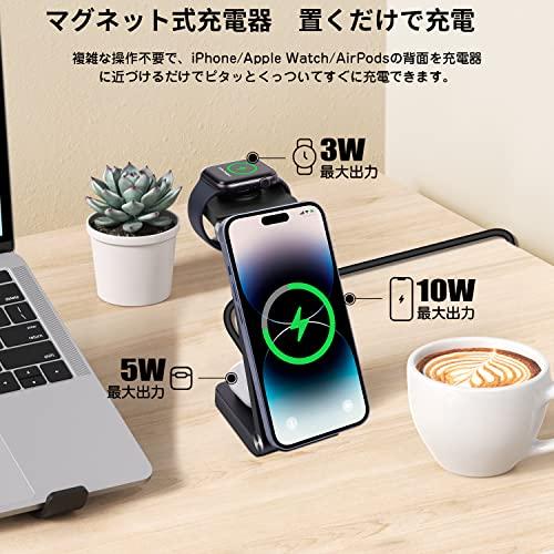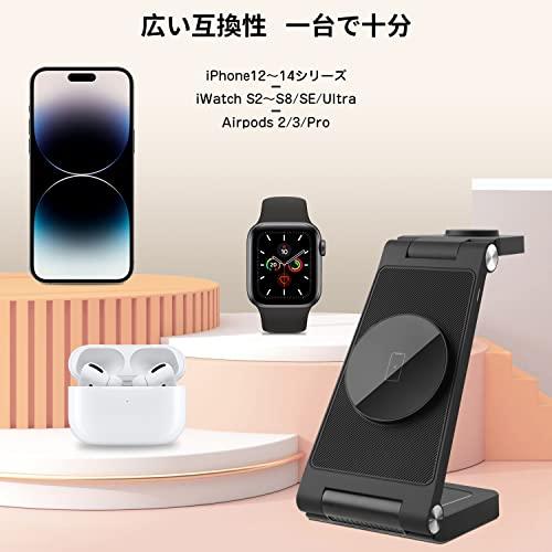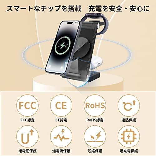 ワイヤレス充電器 充電器 apple watch 充電スタンド magsafe iPhone 充電器 18W急速充電 置くだけ マグネット式充電 スマホ AirPods 時計 同時充電 折り畳み式 コンパクト iPhone12 / 13 / 14シリーズ / AirPods / Watchなど対応