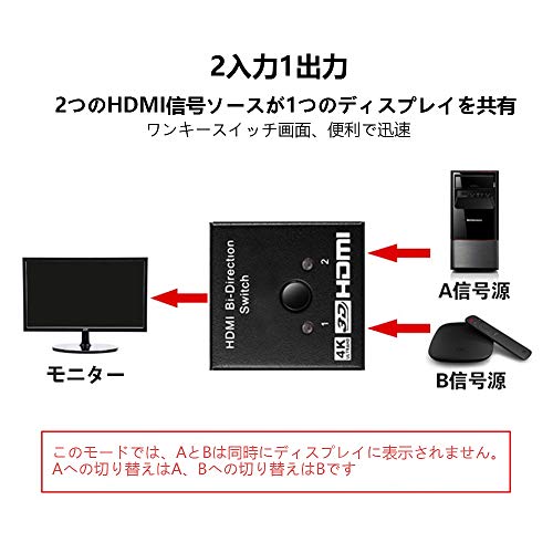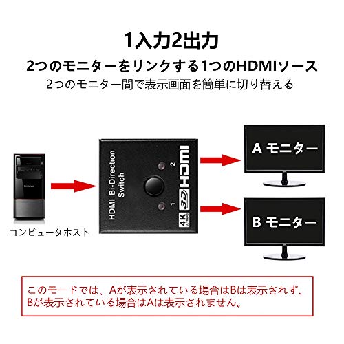 HDMI分配器 HDMI切替器 双方向 hdmiセレクター 4K / 3D / 1080P対応1入力2出力 / 2入力1出力手動切替 PS3 / PS4 / Nintendo Switch / Xbox / DVDプレーヤーなど対応