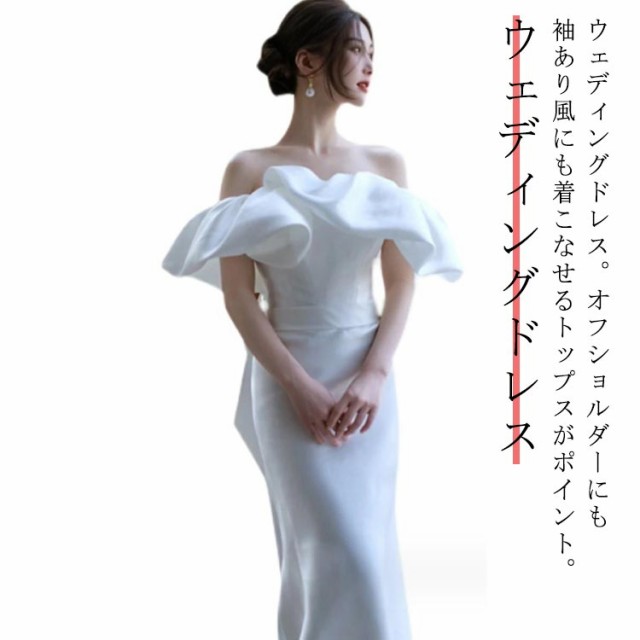 ウェディングドレス ウエディングドレス パーティードレス レディース 白 ロングドレス フレア袖 袖あり 半袖 オフショルダー 演奏会 結婚式 発表会 二次会 ウェディング 花嫁 前撮り 後撮り 披露宴 結婚式 演奏会 発表会 マキシ丈 大きいサイズ 小さいサイズ XS-3XL