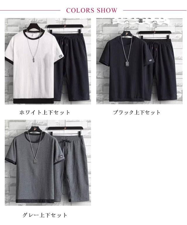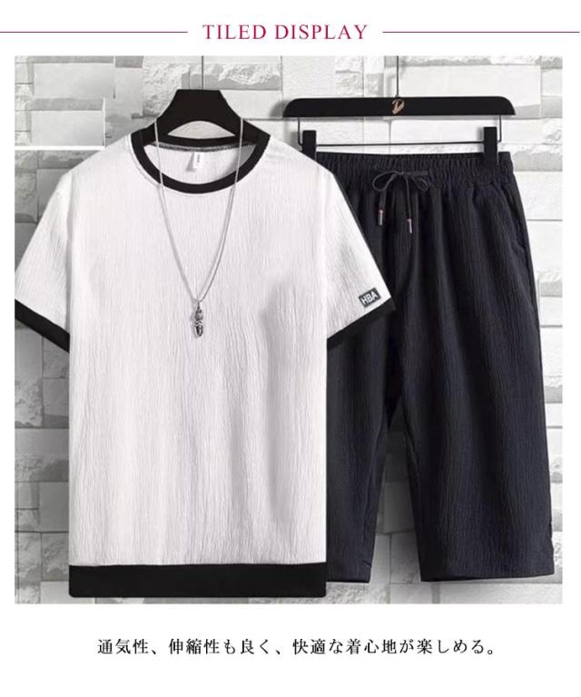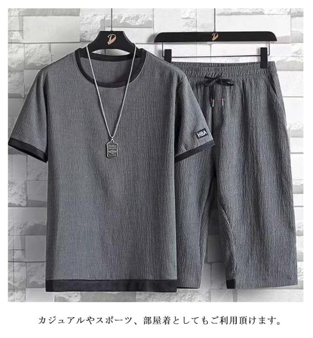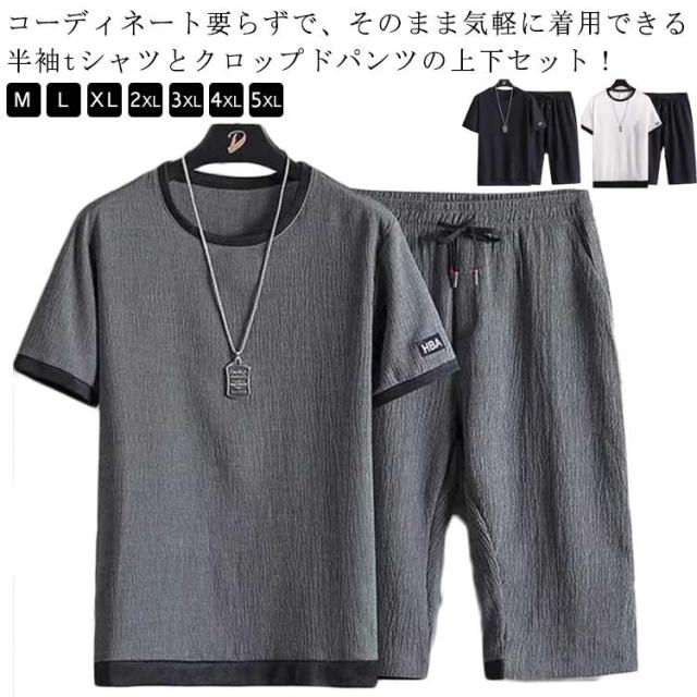 半袖tシャツ クロップドパンツ メンズ メンズ 上下セット 2点セット シンプル 半袖 tシャツ ハーフパンツ ルームウエア セットアップ 無地 部屋着 大きいサイズ カジュアル スポーツウエア 涼しい 夏用 大きサイズ