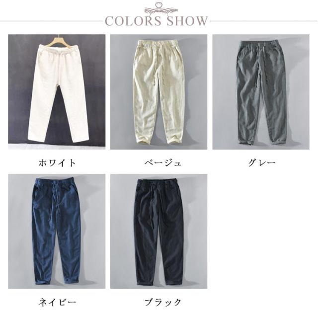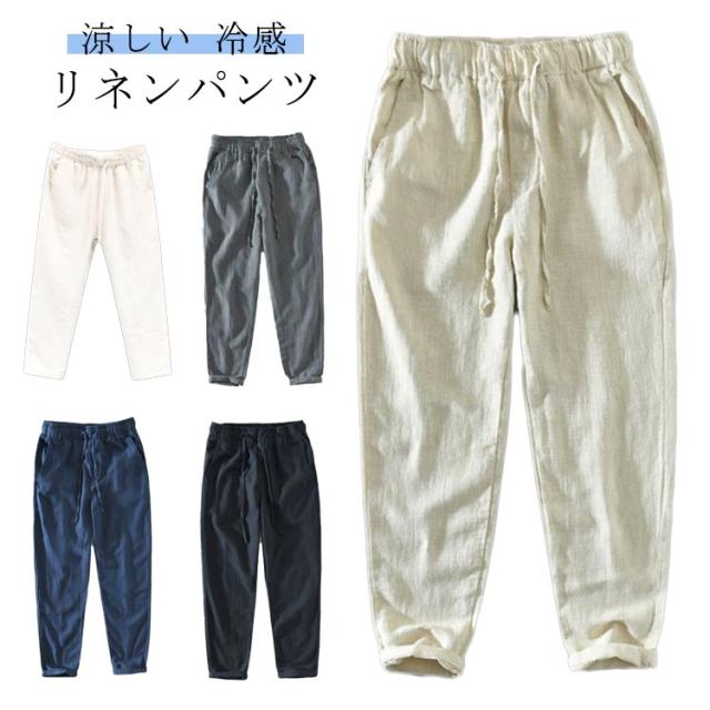 リネンパンツ 涼しい パンツ メンズ テーパードパンツ 麻パンツ 冷感 チノパン 無地パンツ 九分丈パンツ ボトムス シンプル 夏ファッション ロングパンツ リネン 麻100% ウエストゴム メンズ 麻 パンツ