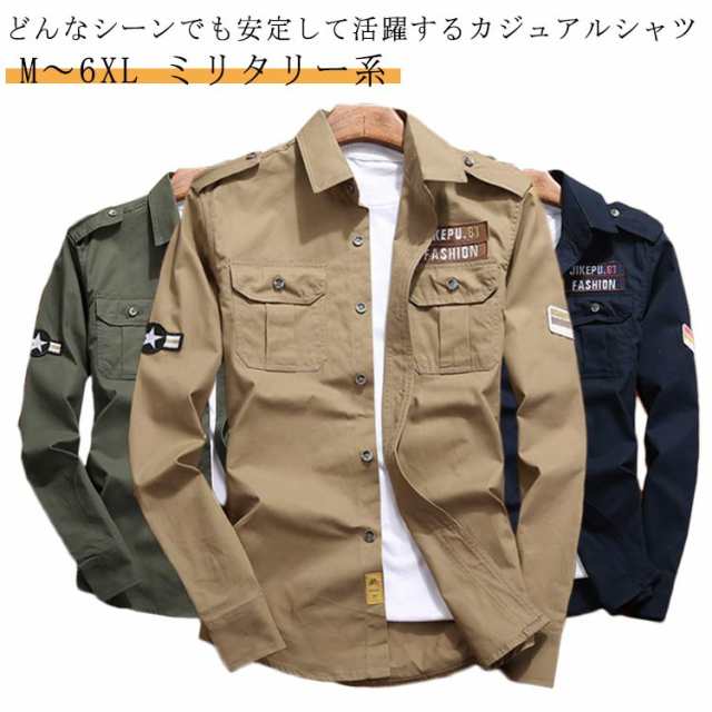 カジュアルシャツ メンズ 長袖シャツ トップス 紳士服 春服 秋服 ミリタリーシャツ アーミーシャツ 綿 シャツジャケット ワークシャツ 無地 重ね着 大きいサイズ トップス メンズミリタリーシャツ ミディアム丈 前開き 大人 男性 プレゼント ギフト 送料無料