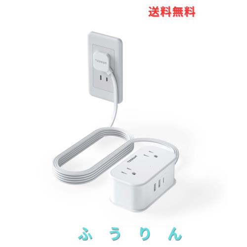 延長コード 2m 電源タップ USB付き たこあしコンセント 薄型プラグ TESSAN 4個口 1個タイプC と2個タイプA コンセントタップ 薄型 タコ足