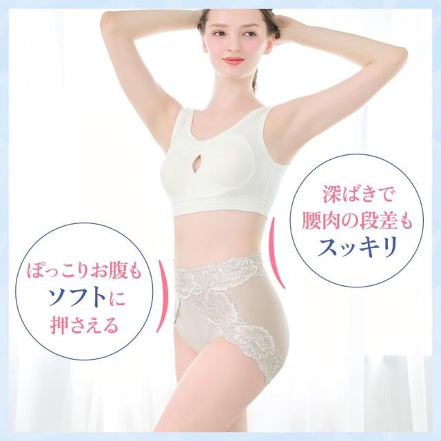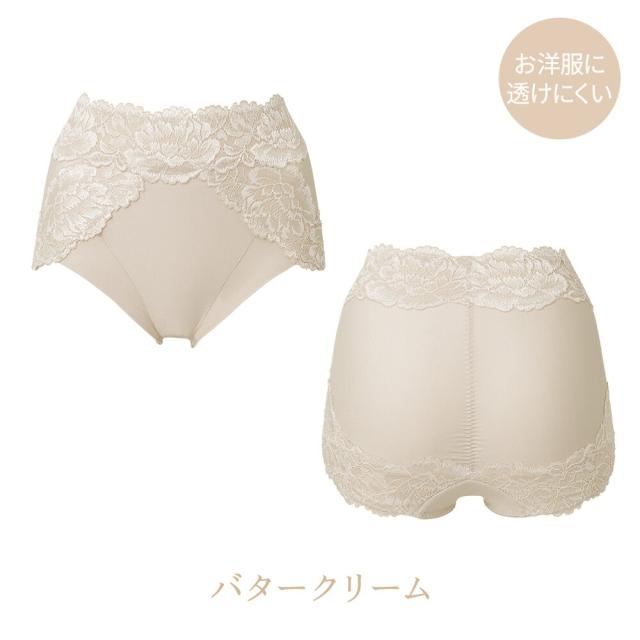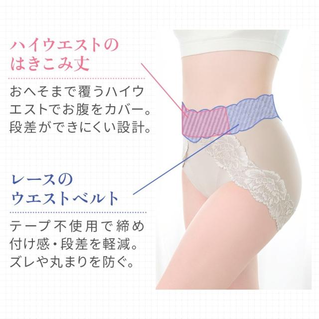ウエストは、高く包み込むことでウエストのお肉を面で押さえ、段になりにくい仕様。