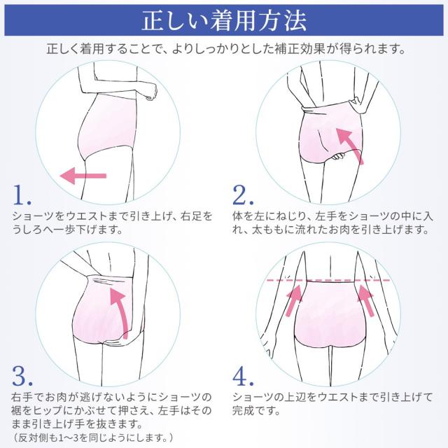 お尻と太ももの境目を作りながら、ウエスト方向へ持ち上げて効果的にヒップアップします。