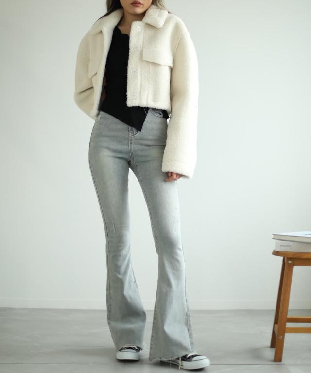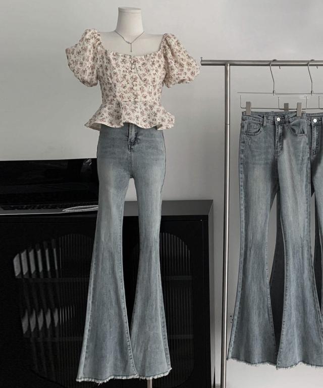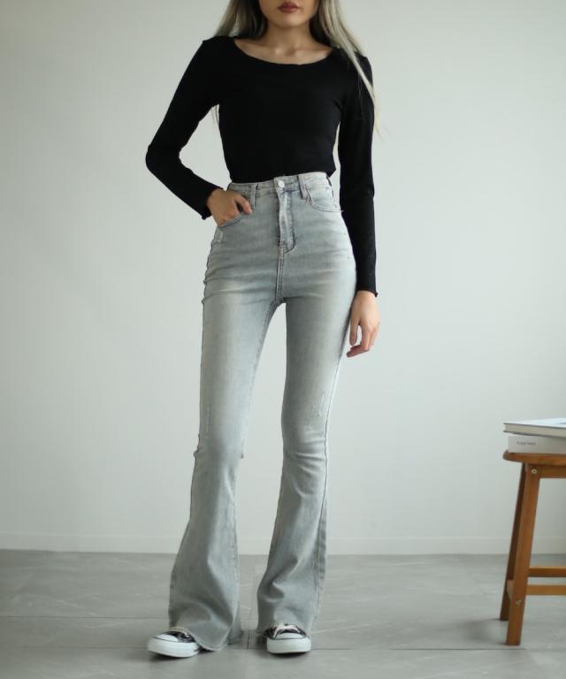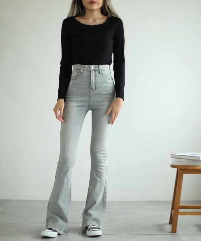 【Jasmine】ハイウエスト ブーツカット デニムパンツ