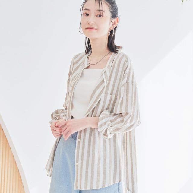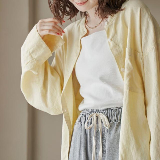 品名:リネンレーヨンバンドカラーシャツ