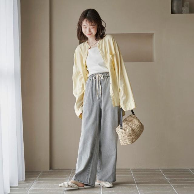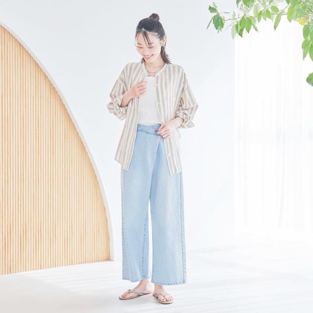 麻×レーヨンのブレンド素材で、汗ばむ季節にもさらっと快適に着用できます。