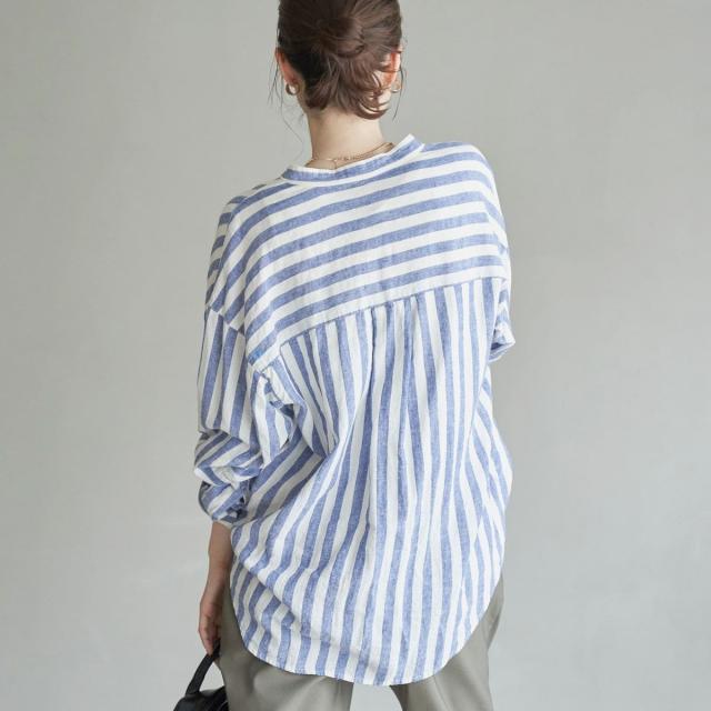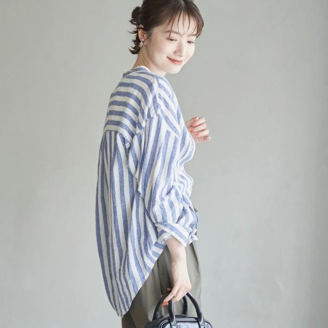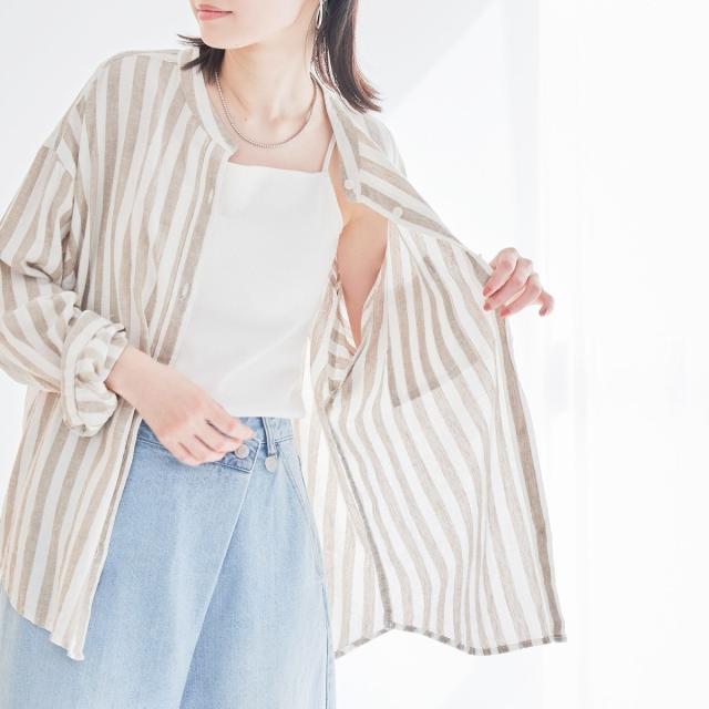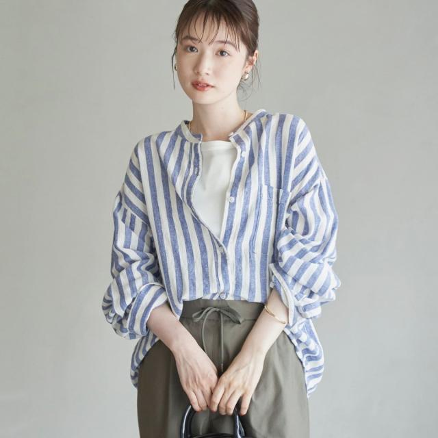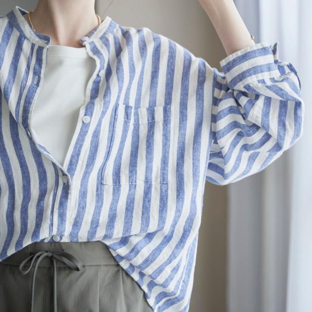 ご好評につき再入荷!軽やかに大人の抜け感を演出する、涼感バンドカラーシャツ
