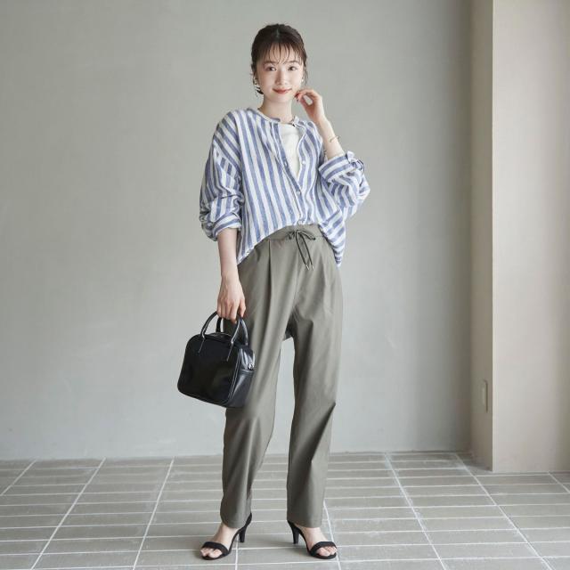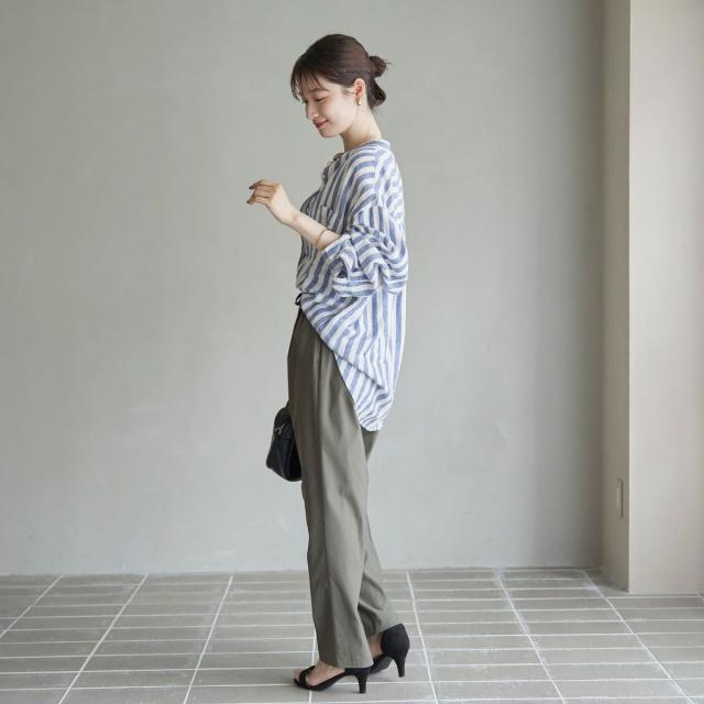 ・大人のカジュアルスタイル×首元のバンドカラーですっきりとした印象に