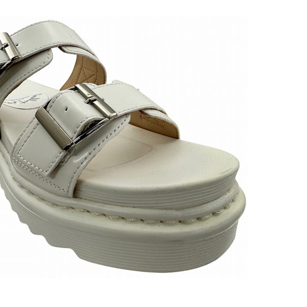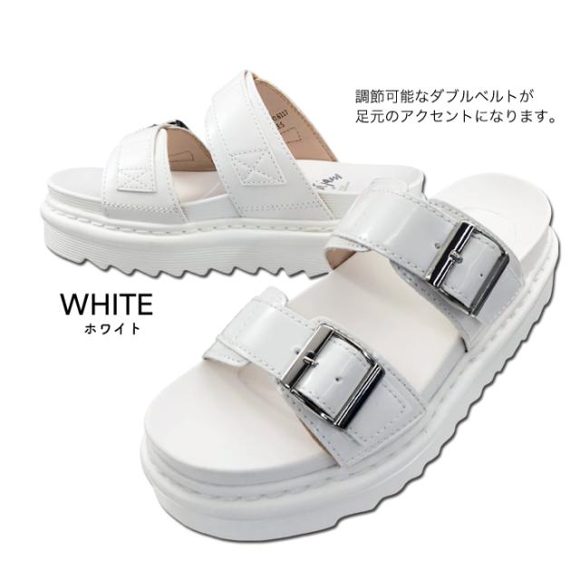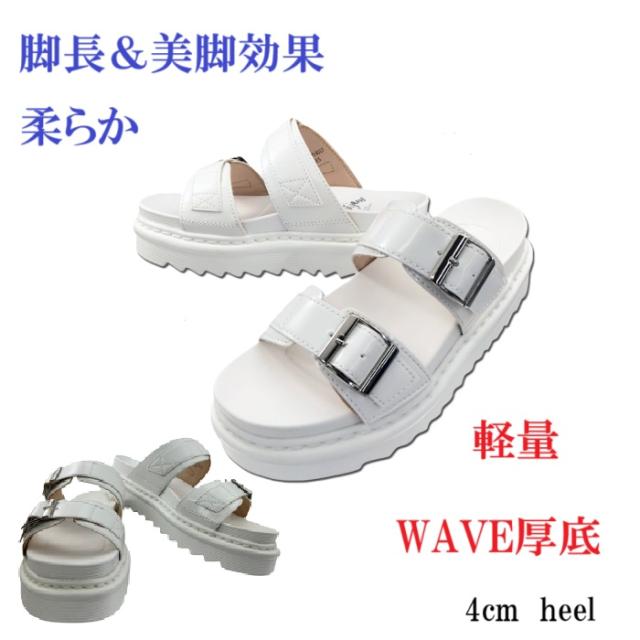 サンダル 厚底 美脚 脚長効果 スタイルアップ カジュアル ダブルストラップ シルバーバックル 波型ソール 履きやすい 歩きやすい ホワイト
