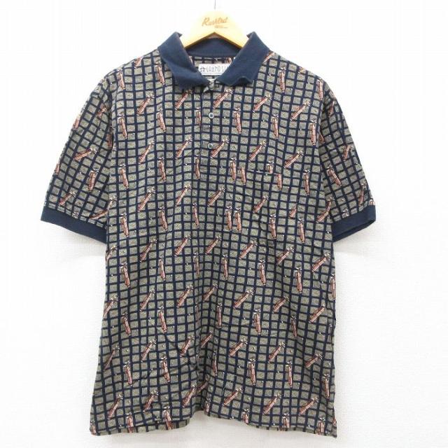 古着 半袖 ポロ シャツ メンズ ゴルフ 大きいサイズ コットン 紺他 ネイビー XLサイズ 中古 トップス 中古 古着