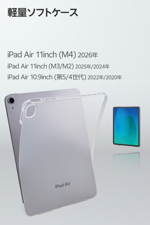 透明で軽量なソフトクリアケースです。強じんな耐久性としなやかな弾力性をあわせ持ったTPU素材を使用し、端末を保護します。![]() ■透明で軽量なソフトクリアケースです。強じんな耐久性としなやかな弾力性をあわせ持ったTPU素材を使用し、端末を保護します。 ■シリコン素材より強く耐久性に優れ、プラスチック素材よりしなやかな弾力性を持つTPU(熱可塑性ポリウレタン)素材を使用しています。 ■ケースを装着したままApple Pencil Proの充電が可能です。 ■ケースが画面の縁まで回り込む設計のため、より傷や衝撃を和らげます。 ■ケースを装着したままで画面の確認、充電、各種ボタン操作、写真撮影が可能です。 ![]() ■対応機種:11インチiPad Air(M3)、11インチiPad Air(M2)、iPad Air (第5世代 2022年モデル)、iPad Air (第4世代 2020年モデル) ■対応モデル番号:A2591、A2589、A2588、A2325、A2324、A2316、A2072 ■セット内容:ケース×1 ■材質:TPU(熱可塑性ポリウレタン) ■カラー:クリア ■サイズ:幅約183mm×厚み約10.7mm×高さ約252mm ■重量:約105g |