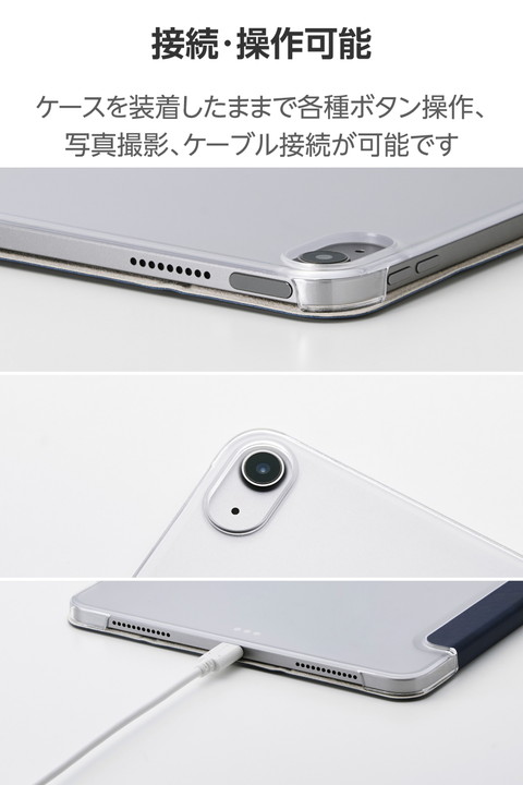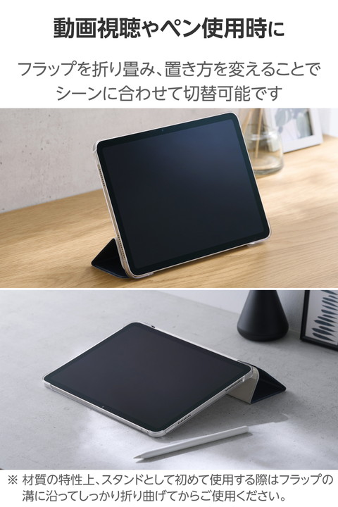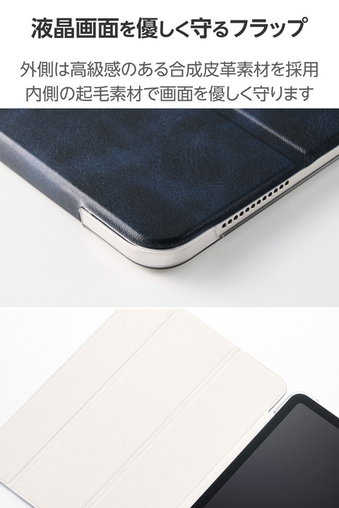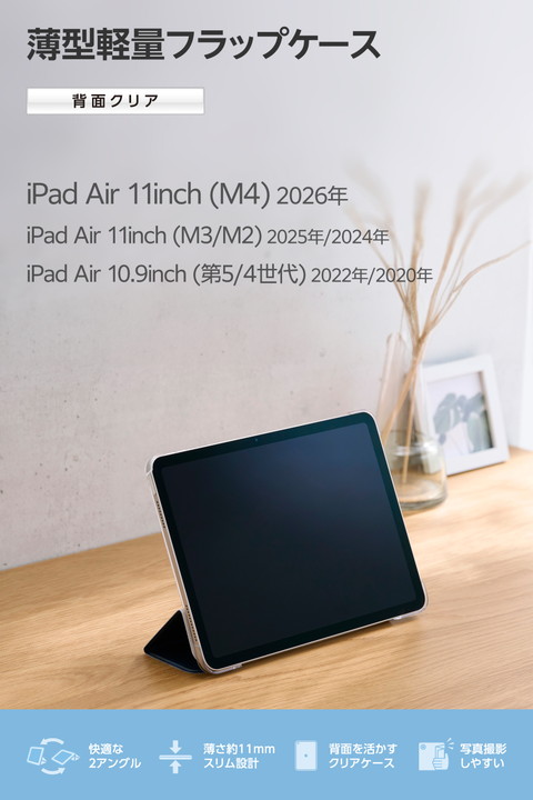 エレコム iPadAir 11インチ (M3 M2) 用 フラップケース 薄型軽量 背面クリア 2アングル フラップ ケース カバー スリープ対応 ネイビー ┃TB-A25MWVNV