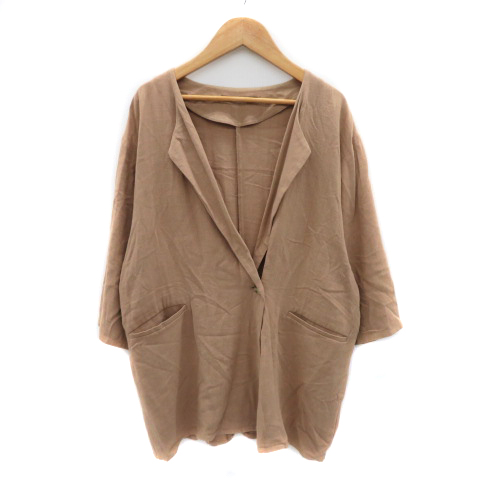 【中古】カスタネ Kastane ノーカラージャケット ミドル丈 七分袖 シングルボタン 麻 リネン混 ベージュ レディース
