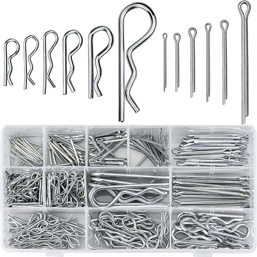 【セット内容】コッターピンの品揃えには、12種類一般的に使用されるサイズのコッターピンとヘアピンが含まれております。合わせて250個のコッターピンヘアピンとRクリップファスナーを透明ボックスに梱包され、便利に素早くアクセスできます。