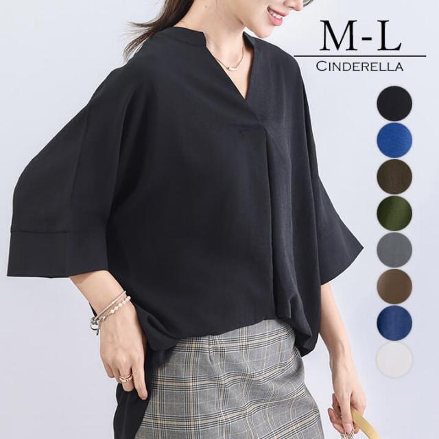 スキッパーシャツ ドルマンスキッパー シャツ レディース カジュアル 春 夏 大人カジュアル フォーマル かわいい スタイリッシュ ゆったり トップス きれいめ 体型カバー 二の腕カバー 普段着 半袖 五分袖 七分袖 袖あり Vネック シンプル オフィス ブラック 黒 ブルー 青