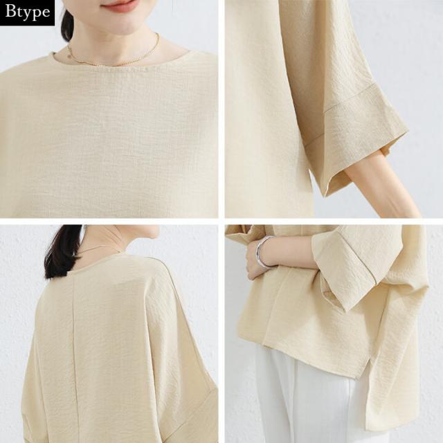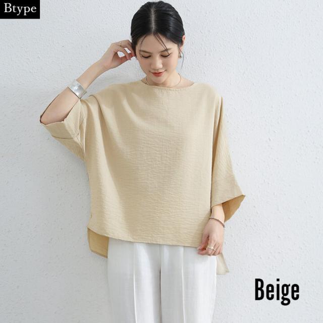 オーバーサイズ ブラウス レディース トップス リネン 夏 春 女性 ゆったり 2の腕カバー カジュアル 快適 透け感 大人 上品 シンプル ラフ きれいめ ゆったり 半袖 五分袖 抜け感 20代 30代 1代 50代 10代 60代 ベージュ ブラック ブルー ホワイト 茶 黒 青 白 M L 9号 11号 プール 旅行 海 清涼感 リネン風 涼しい yc0371b