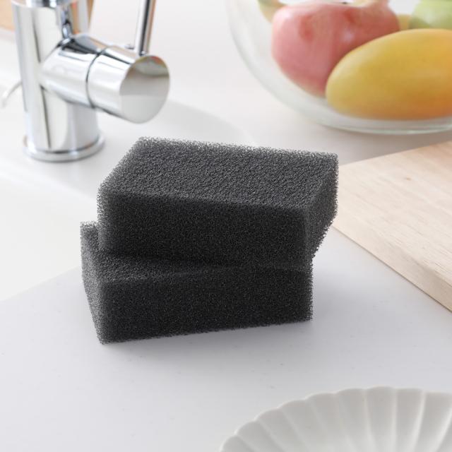 画像はブラックを使用しています。 キッチンスポンジは大きすぎず小さすぎない目の粗さでできています。