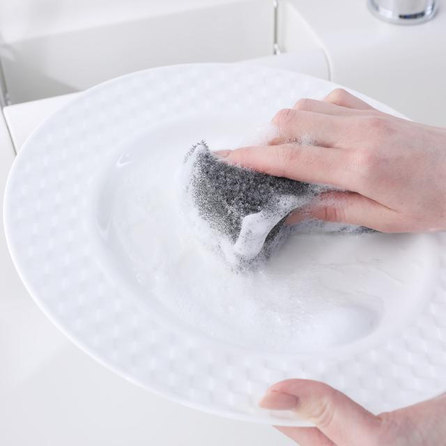 画像はブラックを使用しています。 泡立ち・水切れ・耐久力抜群の台所用スポンジ 少量の洗剤でも泡立ちがいいキッチンスポンジです。