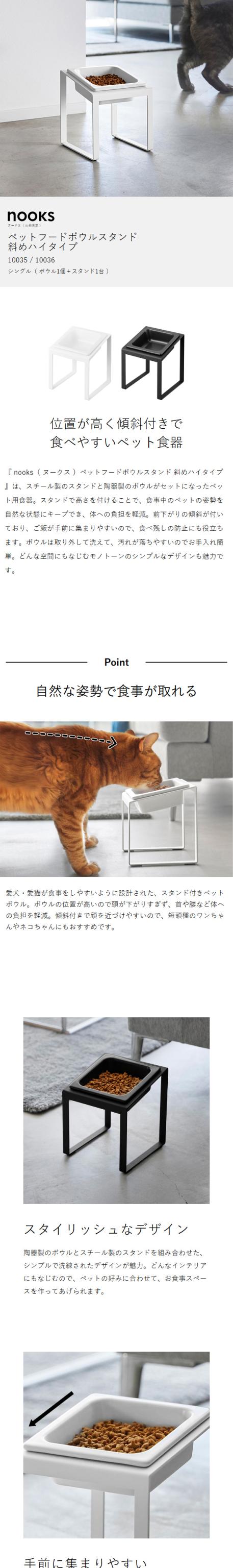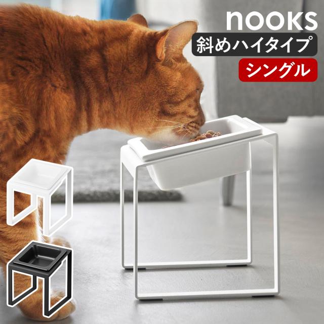 [ ペットフードボウルスタンド ヌークス シングル 斜めハイタイプ]山崎実業 nooks 餌入れ 犬 猫 高さがある 食べやすい スタンド 陶器 フードボウル エサ入れ エサ皿 餌皿 器 水飲み イヌ ネコ 北欧 おしゃれ yamazaki 公式 モノトーン ブラック ホワイト 10035 10036