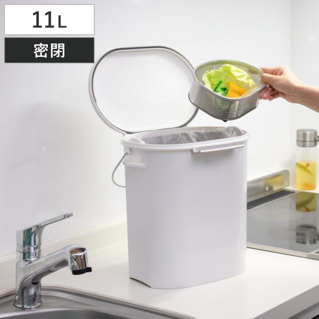 ゴミ箱 密閉 11L エバン ペール 中バケツ付き 生ゴミ ホワイト ( ごみ箱 11リットル ニオイ漏れ防止 パッキン インナーバケツ 持ち手付き 生ごみ おむつ ニオイ 防止 小さい 臭わない オムツペール 日本製 )