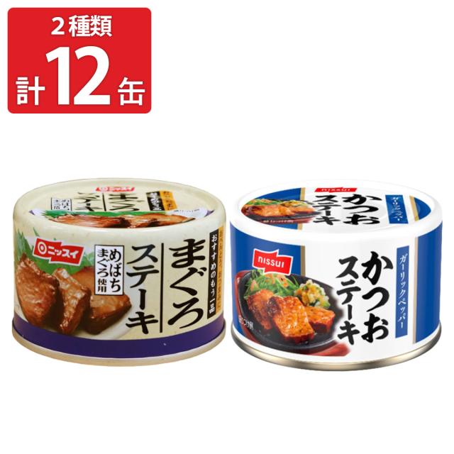 ニッスイ まぐろステーキ かつおステーキ 缶詰セット 計12缶 マグロステーキ おかず おつまみ カツオステーキ