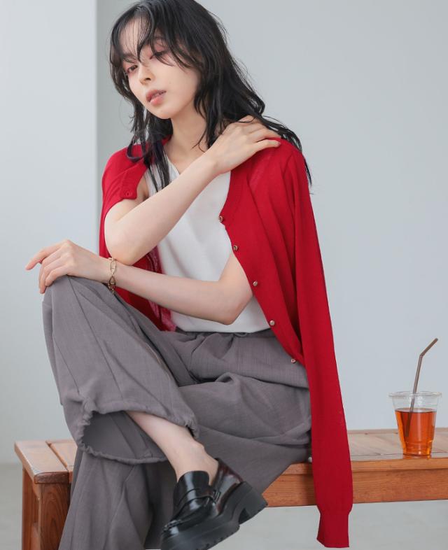 ![]() ![]() ![]() ![]() ![]() ![]() ![]() ![]() ![]() ![]() ![]() ![]() ![]() ![]() ![]() ![]() ![]() ![]() ![]() ![]() ![]() ![]() ![]() ![]() ![]() ![]() ■Comment リネンのようなさらっとした肌触りが魅力のカーディガン。 肌に触れるとひんやりする接触冷感とUVカットもしてくれる嬉しい機能付き。 暑い季節のお出掛けには、これがあれば安心。 着丈が短いのでどんなボトムスにも合わせやすく、スタイルアップできます。 冷房の寒さ対策にも使える、便利なアイテムです。 ■Size(cm) 【M】:着丈50 バスト100 肩幅37 袖丈60 袖口17 天幅13 前下がり8 裾回り66 ■Fabric レーヨン90% ナイロン10% 生地感:麻のようなシャリ感がある、涼しげなシアーニット 裏地:なし 伸縮性:あり 透け感:あり 生地の厚さ:薄手 ■Weight 約152g ■Color ※共通:ボタンはゴールド オフホワイト(黄みがかった白) レッド(鮮やかな赤) グレー(標準的なグレー) ネイビー(標準的なネイビー) ブラック(標準的な黒) ■Country of origin 中国 ■洗濯表示 ![]() ■Attention ※ご覧になるモニターや環境により実際の商品と色味が異なる場合がございます。予めご了承ください。 ※実寸サイズは平置きメジャー採寸のため若干の誤差が生じる場合がございます。 ※お取り扱い・お洗濯につきましては、付属の商品タグをご使用前に必ずご確認下さい。 ※濃色の商品は色落ち・移染する可能性がございますので、お取り扱いにはご注意下さい。 ※繊維製品のため、同じ商品であっても生産時期やカラーによって伸縮率・生地感・色味が多少異なる場合がございます。特にニット製品に関してはプレス・洗い加工等で5cm前後の誤差が生じる場合がございます。 これらは品質上問題はございません。予めご了承下さい。 ■Staff comment AI/身長:154cm(普段のサイズ:M-L) 体型:骨格ストレート 全体的に厚みのある、産後体型。 トップスはMサイズを選ぶ。 ウエストと腰回りが大きく、ボトムはLサイズを選ぶこともあります。 【着丈】おへそ下16cm。 【袖丈】伸ばすと指が隠れ、袖口は手の甲で止まる。 【一言コメント】 さっとバッグに入る薄さなので、冷房対策にも重宝しそうです。 AYA/身長:158cm(普段のサイズ:M) 体型:骨格ウェーブ 上半身筋肉質の標準体型。肩幅は広くバストは平均。 ウエストは細くヒップが大きいので、 ヒップに合わせてボトムは選びます。 【着丈】おへそ下13cm。 【袖丈】伸ばすと指が隠れ、袖口は手の甲で止まる。 【一言コメント】 私は紫外線に弱いので、お出掛けに欠かせないアイテムになりそうです。 RISA/身長:165cm(普段のサイズ:L-LL) 体型:骨格ナチュラル 体に厚みがあるやや痩せ型。 バスト・ウエスト・ヒップは標準ですが、 肩幅が広くて腕が長め、ふくらはぎは筋肉質。 身長が高いため普段Lサイズを選びます。 【着丈】おへそ下7cm。 【袖丈】伸ばすと指先が少し見え、袖口は手首で止まる。 【一言コメント】 ショート丈なのでスタイルアップできます。 |