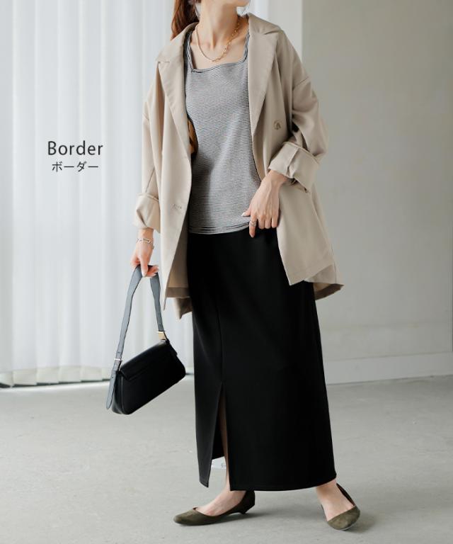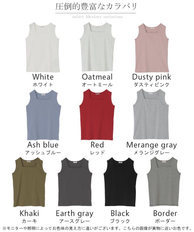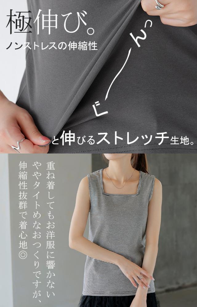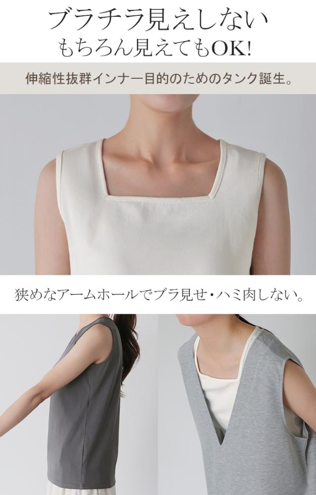 「 選べる4タイプ 」 タンクトップ レイヤード インナー トップス タンク レディース 無地 カットソー ノースリーブ キャミソール スクエアネック ゆったり シンプル カラバリ ストレッチ 柄 ボーダー 体型カバー きれいめ 大人 黒 白 春 夏 HUG.U