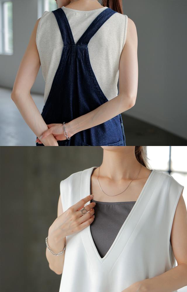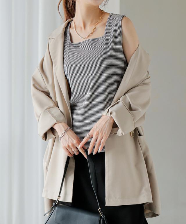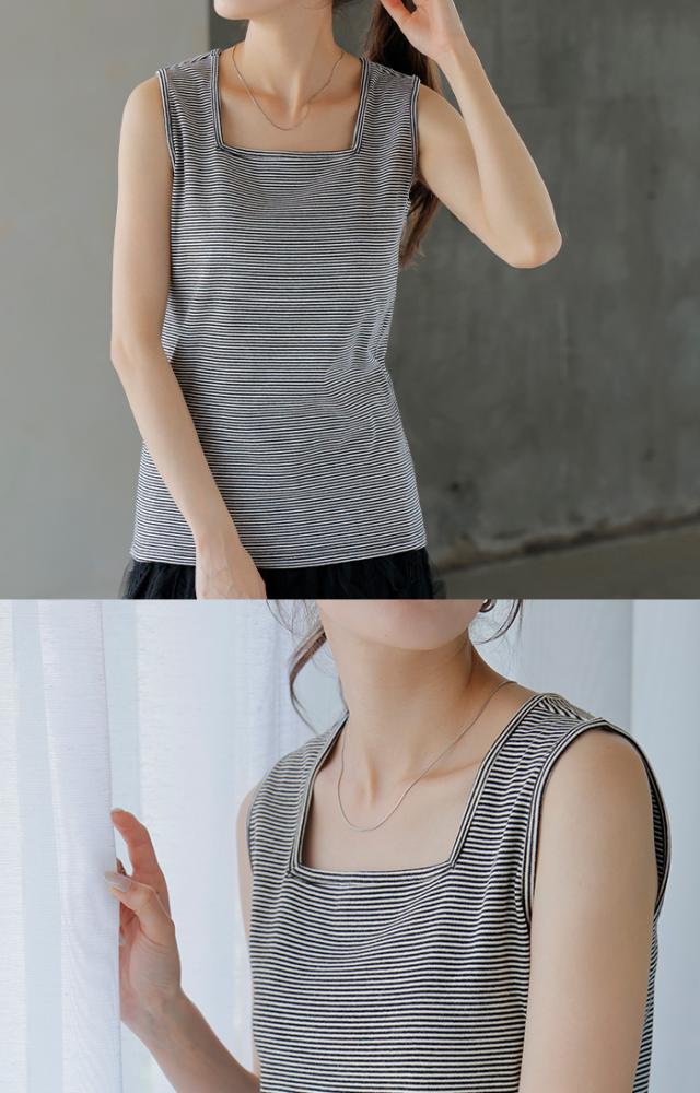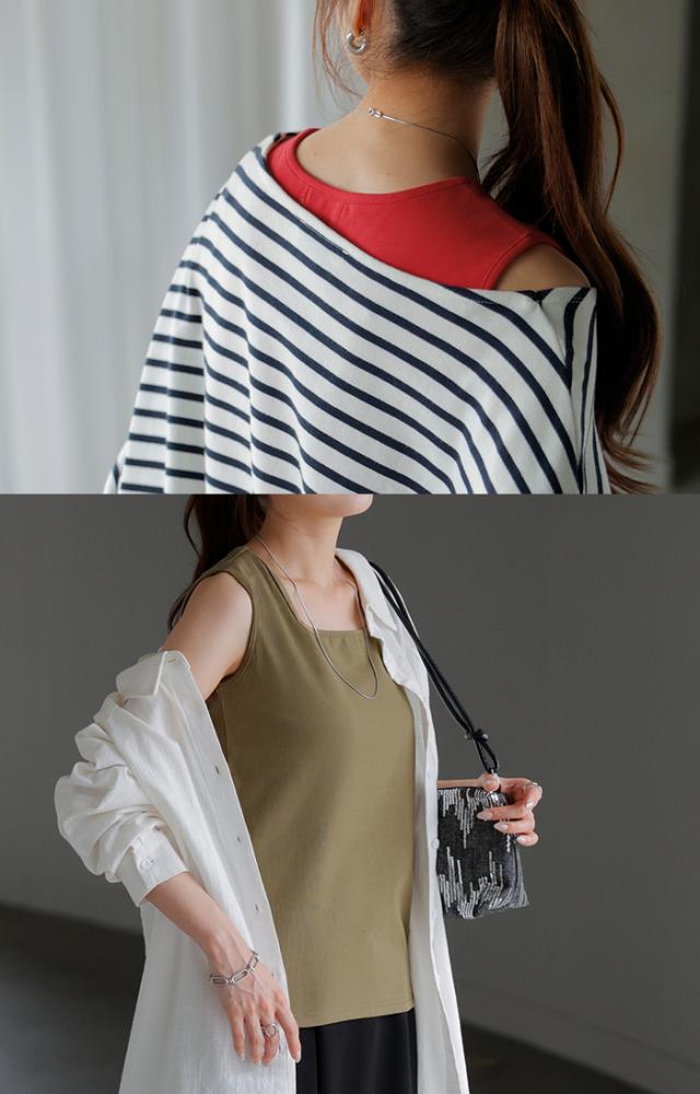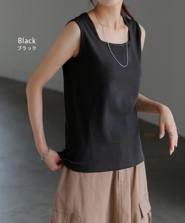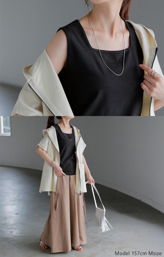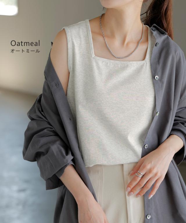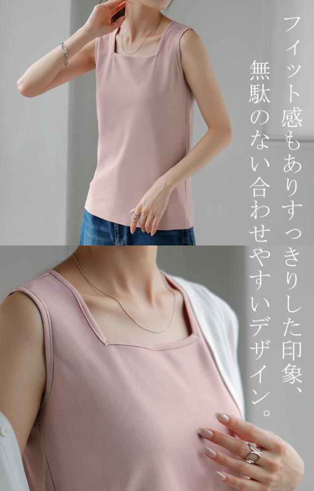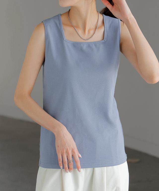 スクエアネックデザインで首回りを綺麗に魅せられるタンクトップです。