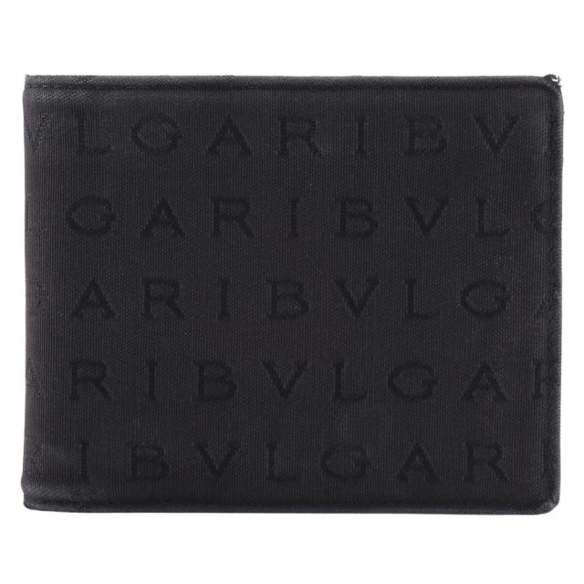 BVLGARI ブルガリ ロゴマニア 札入れ キャンバス 黒 二つ折り財布 メンズ 【中古】