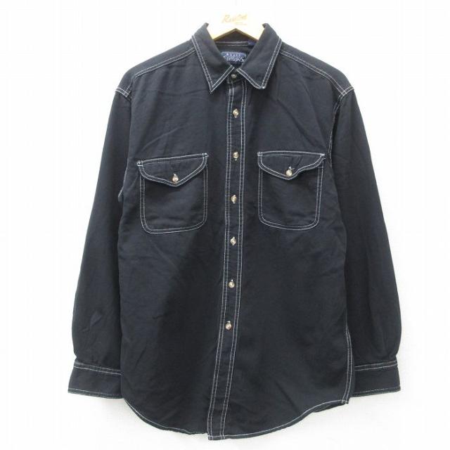 古着 長袖 シャツ メンズ 90年代 90s マルボロ コットン USA製 紺 ネイビー デニム spe Lサイズ 中古 トップス 中古 古着