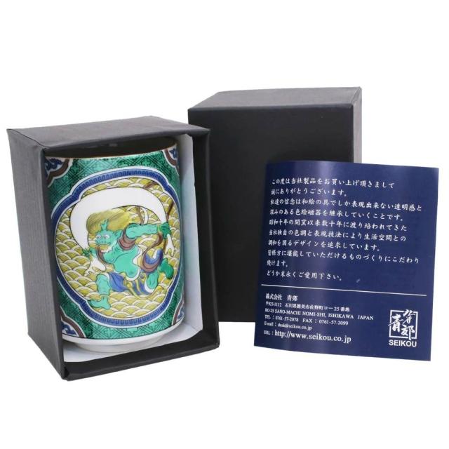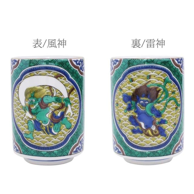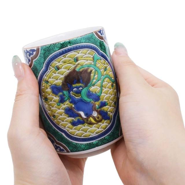 日本製 九谷焼/久谷五彩 磁気/陶器/陶磁器 湯呑/コップ/カップ 吉田屋/青郊窯 風神雷神 華やか/鮮やか お洒落/オシャレ お祝い/記念日/誕生日/結婚祝い/開店祝い プレゼント/贈り物/ギフト 食器/和食器 インテリア