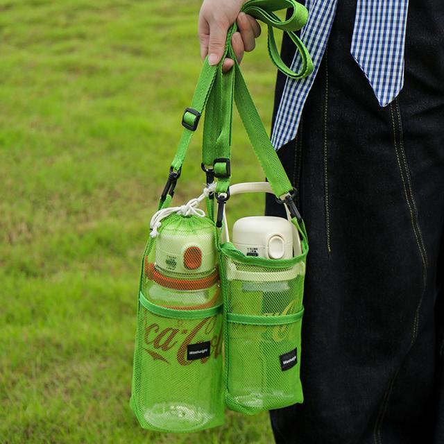 新作 水筒カバー 水筒用ボトルケース ペットボトルホルダー スマホポーチ ケース ショルダー 斜めがけ メッシュ 巾着 ポケット おしゃれ かわいい キッズ 大人