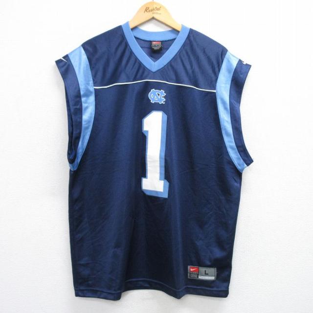 【商品名】 XL★古着 ナイキ NIKE ノースリーブ ビンテージ Tシャツ メンズ 00年代 00s ノースカロライナターヒールズ 1 大きいサイズ ロング丈 Vネック 紺他 ユニフォーム ゲームシャツ