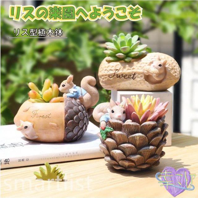 植木鉢 リス りす 母の日 ガーデニングオブジェ 鉢植え フラワープランター 多肉植物 サボテン ミニ プランター おしゃれ 可愛い