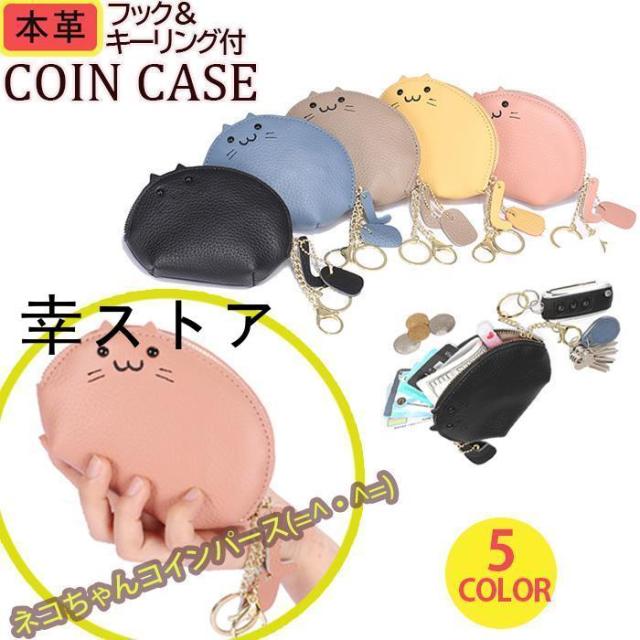 コインケース レディース 小銭入れ 猫 ネコ ポーチ 財布 本革 アニマル 動物 小物入れ チャーム キーリング キーホルダー 雑貨