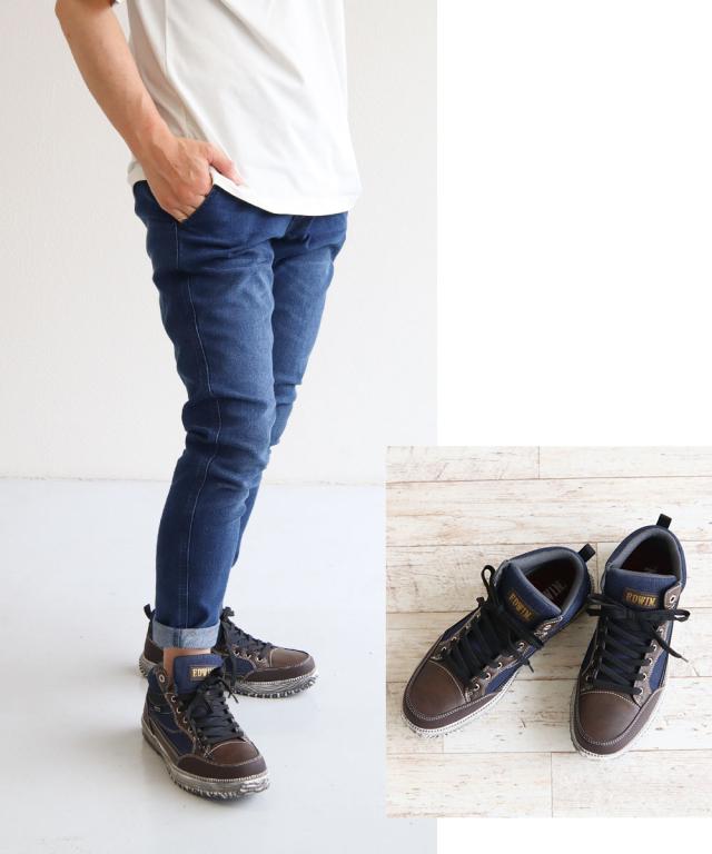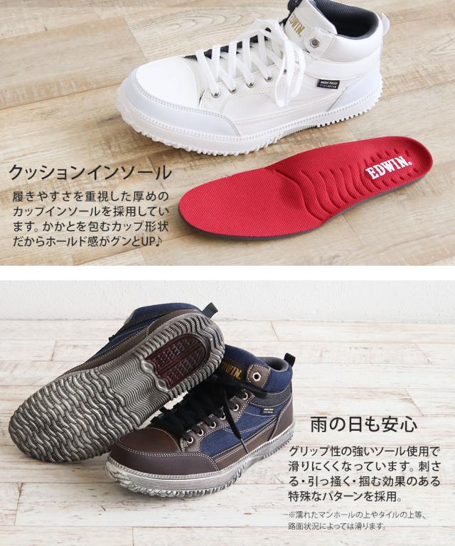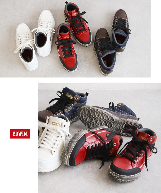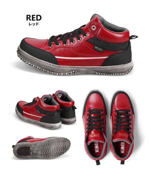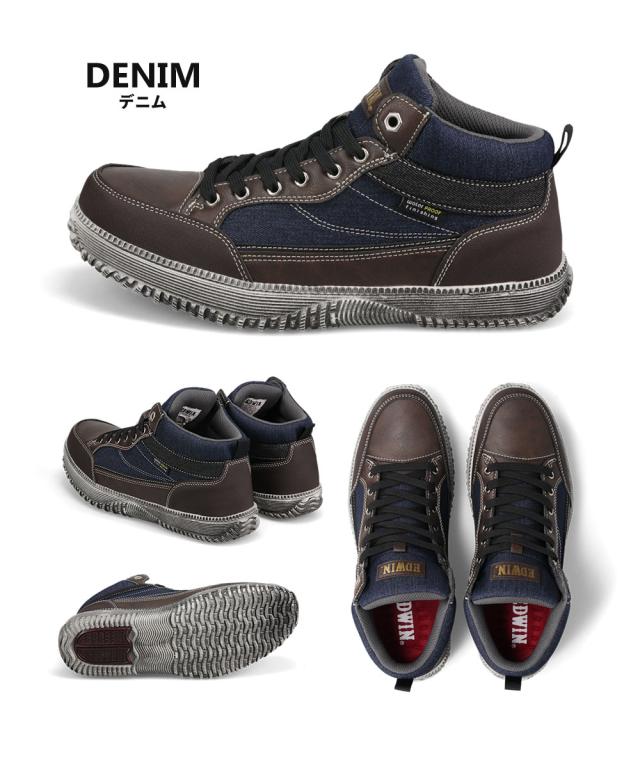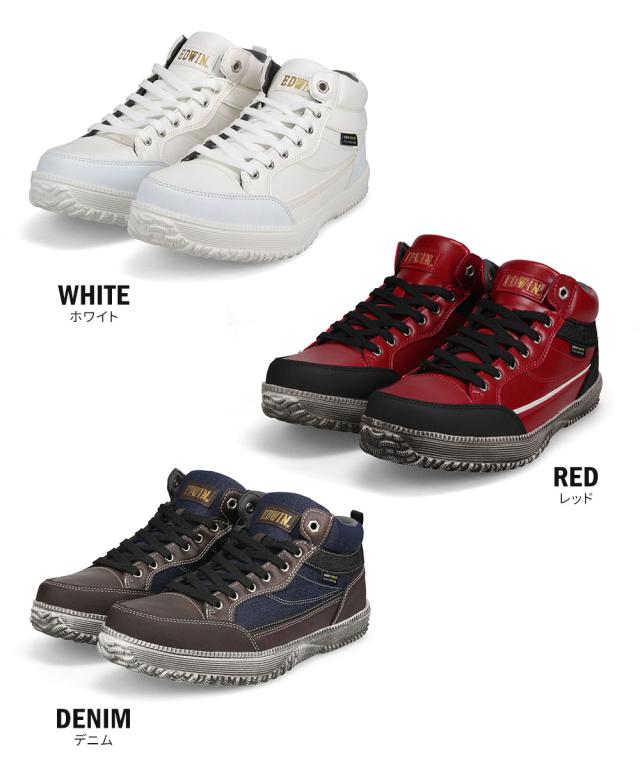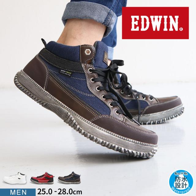 エドウィン メンズ スニーカー ミッドカット カジュアルシューズ 4時間 防水仕様 おしゃれ 黒 軽量 軽い 歩きやすい 4cm 防水 屈曲性 カジュアル 靴 防滑 メンズスニーカー 紳士靴 大人 靴 幅広 大きいサイズ ビッグサイズ デニム レッド ホワイト EDWIN EDM-3602