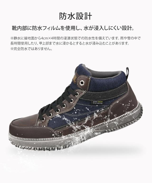 靴内部に防水フィルムを使用し、水が浸入しにくい設計。