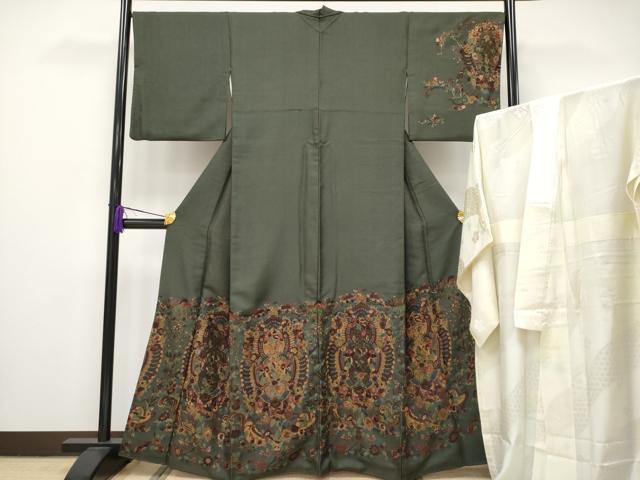 平和屋本店■極上 中国三大刺繍 スワトウ刺繍 総刺繍 訪問着・長襦袢セット 花唐草文 金糸 千歳茶色地 逸品 CYAA2452s5