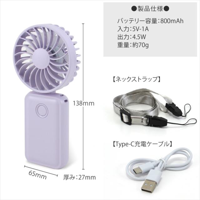 ・USB充電式なのでパソコンやモバイルバッテリーから楽に充電でき、電池不要でいつでもどこでも風を感じられます。