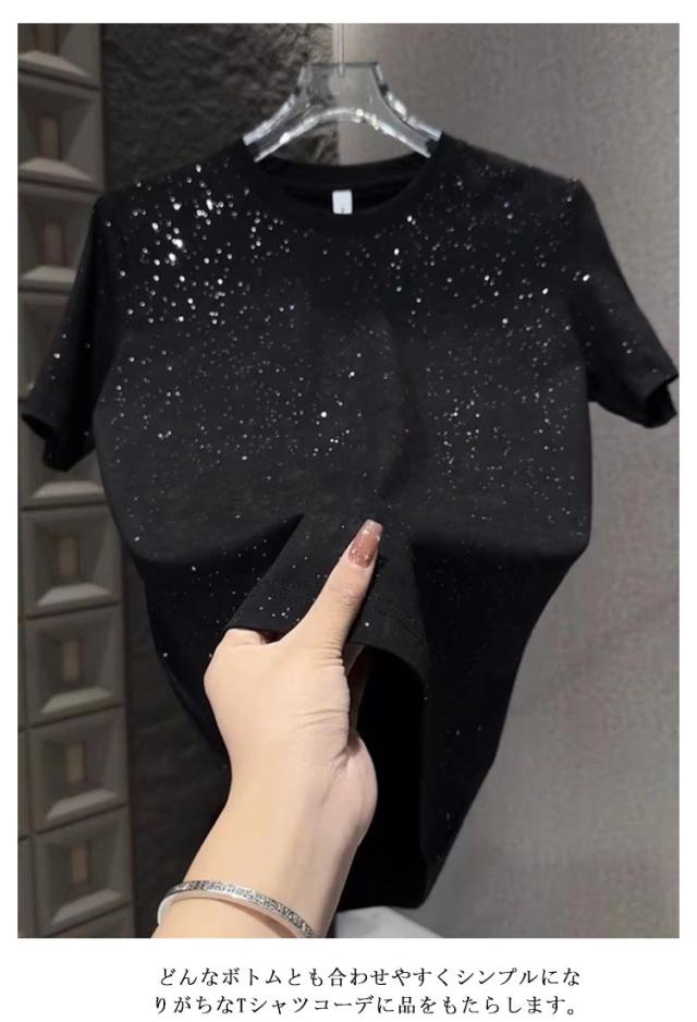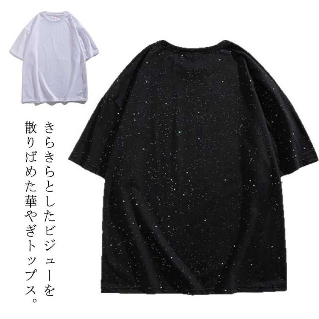 ビジュー Tシャツ メンズ レディース 半袖 tシャツ キラキラ トップス スパンコール Tシャツ 春 夏 夏服 クルーネック ティーシャツ 白T 黒T 丸首 きらきら 高見え 韓国ファッション ゆったり 大きいサイズ ダンス衣装 ストリート おしゃれ カジュアル かっこいい 送料無料