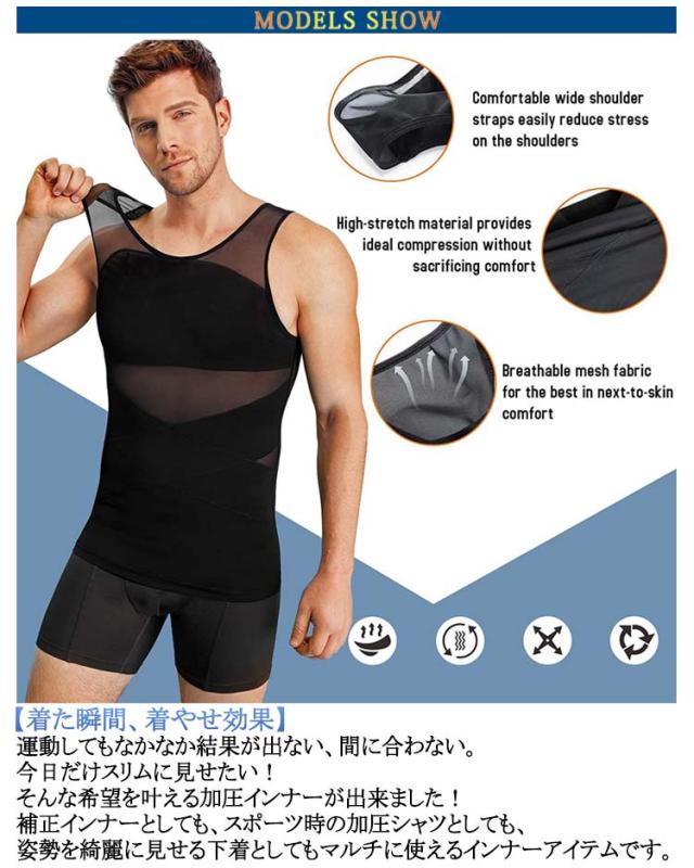 加圧インナー コンプレッションウェア タンクトップ メンズ インナー 加圧シャツ メンズ 加圧シャツ メンズ スポーツウェア ダイエット 補正下着 お腹引き締め コンプレッションウェア