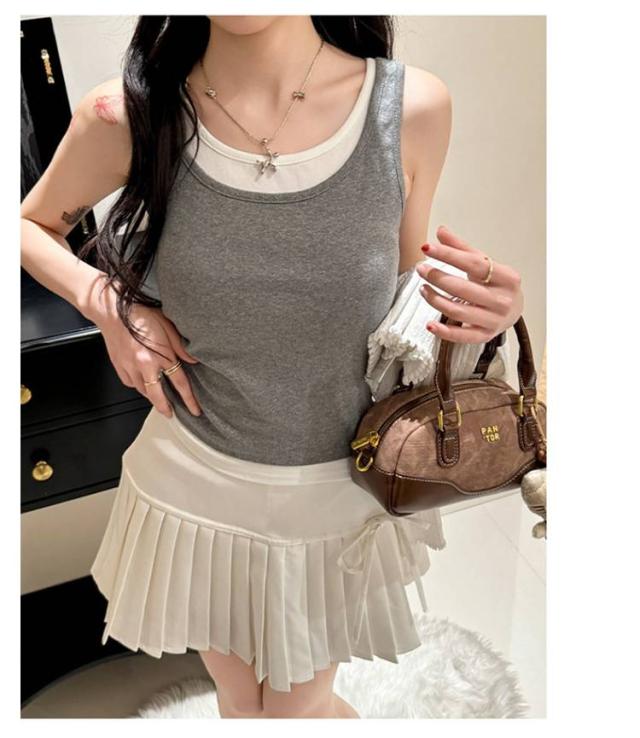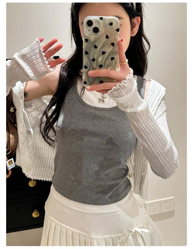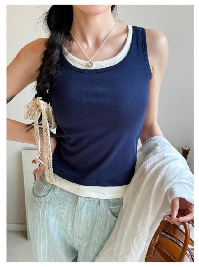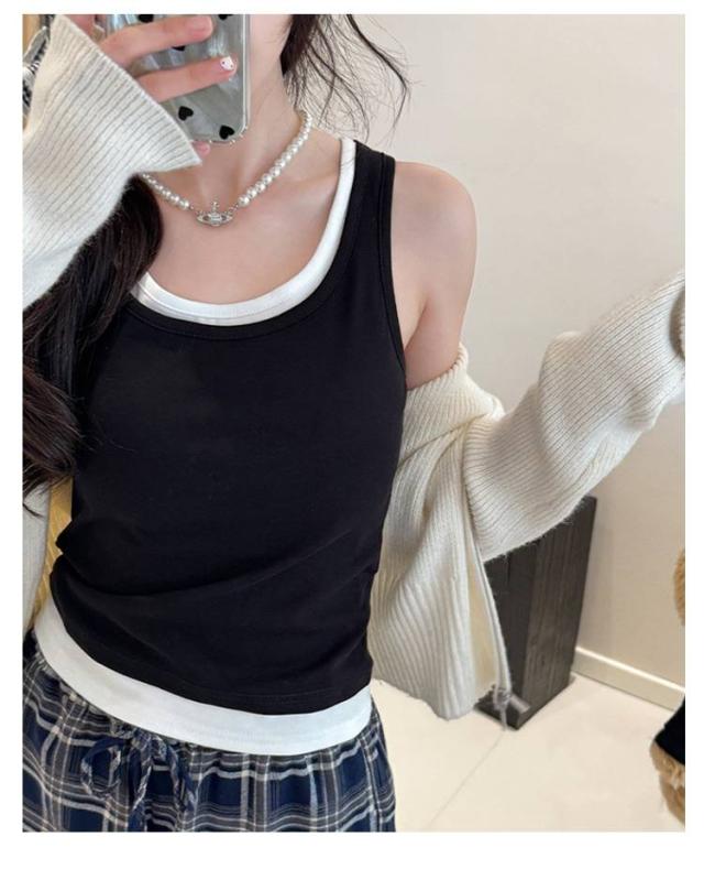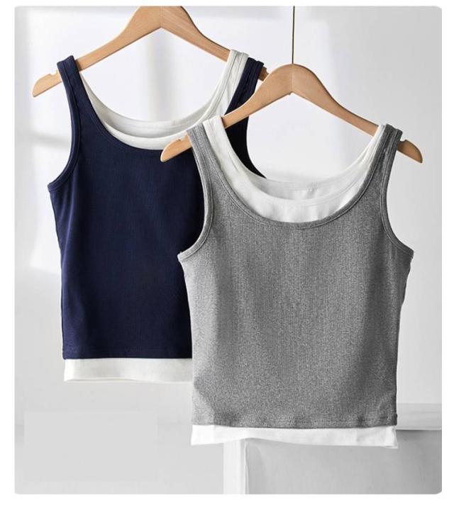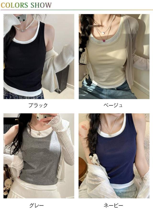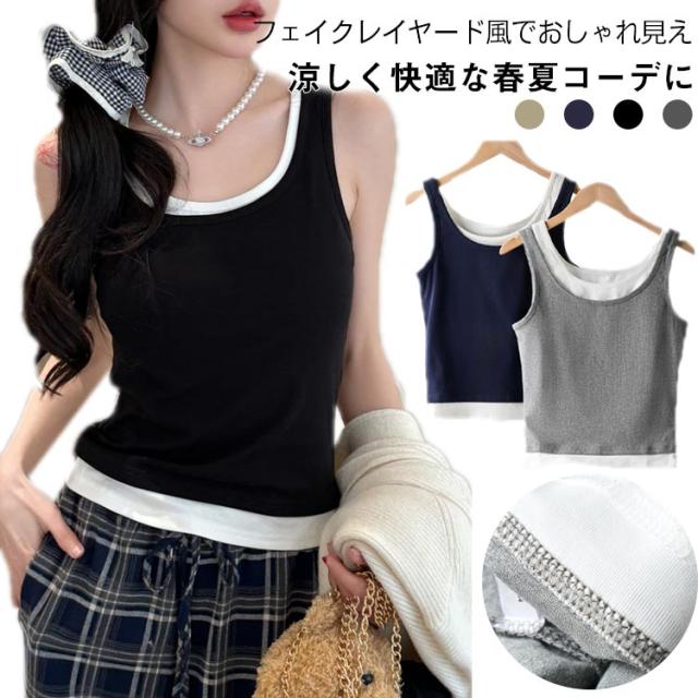 タンクトップ フェイクレイヤード トップス ノースリーブ 夏服 レディース 重ね着風 カジュアル おしゃれ 着回し ヨガウエア スポーツ 可愛い 送料無料